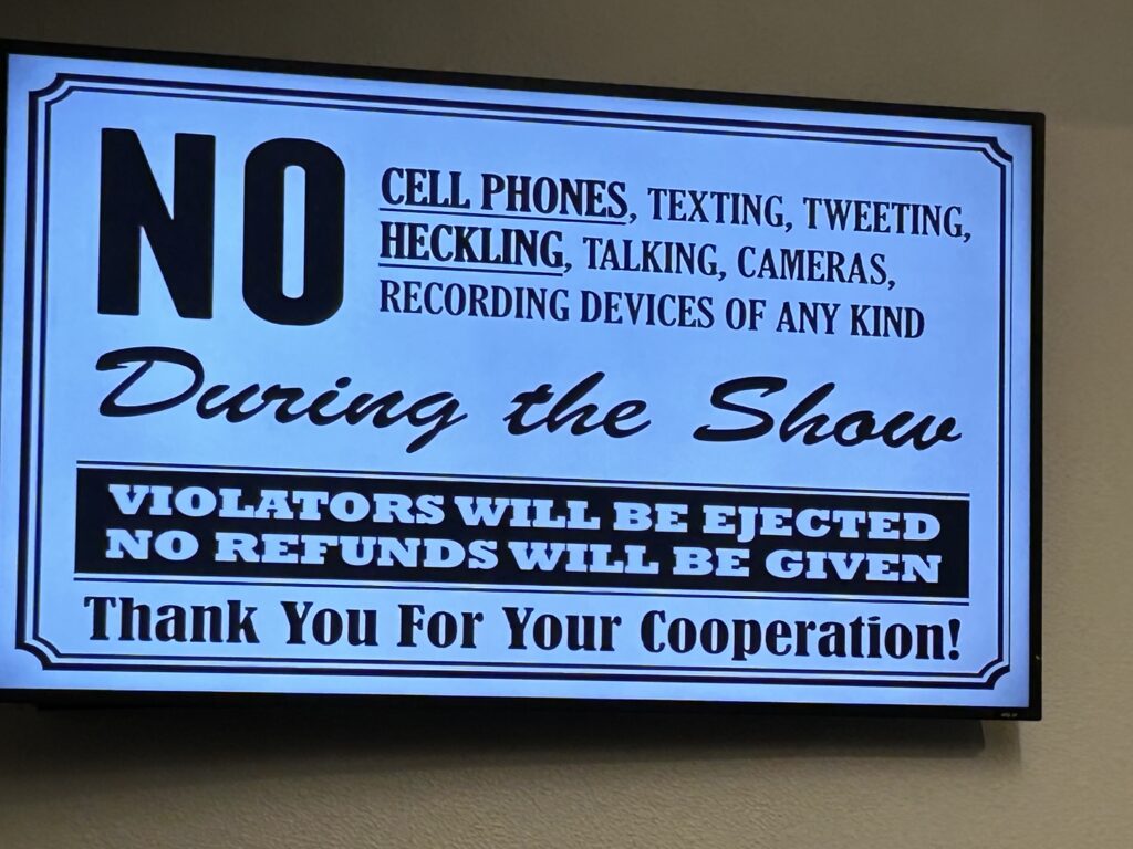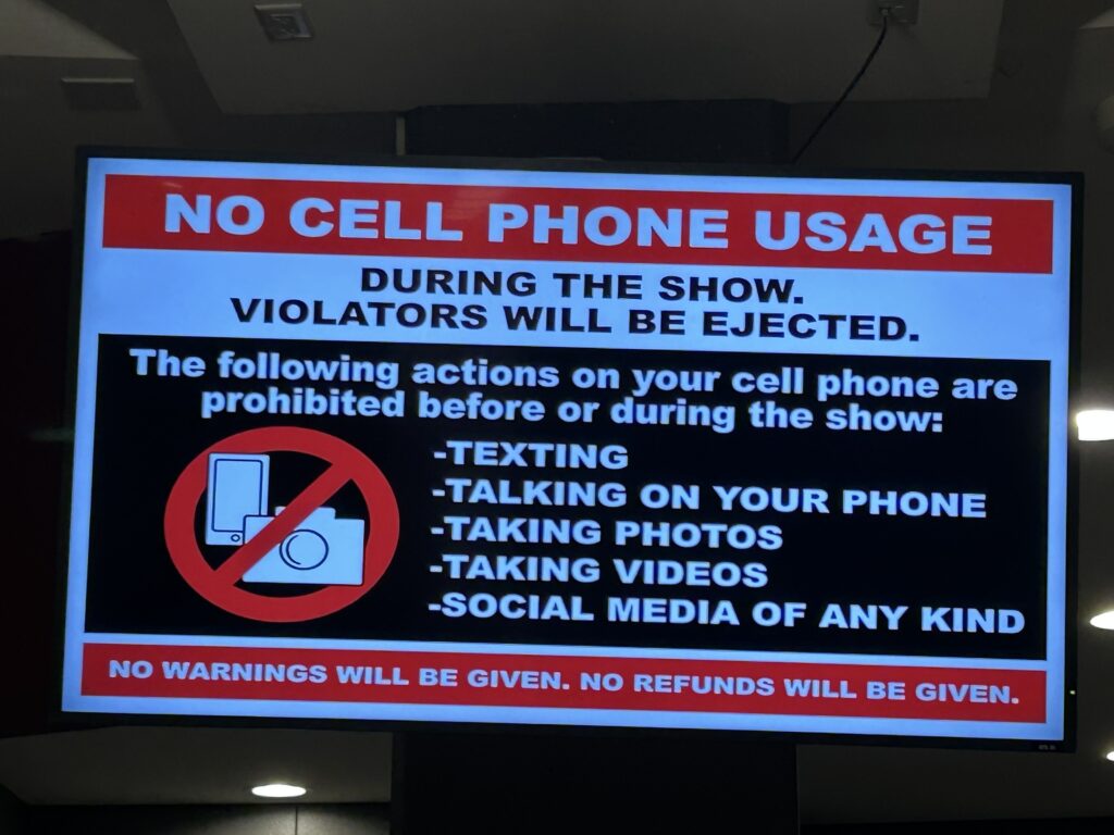 Last week we went to see Nate Bargatze at the Moda Center in Portland OR. One of the things that was interesting was how many signs there were for no cell phone use AND people followed the rules!