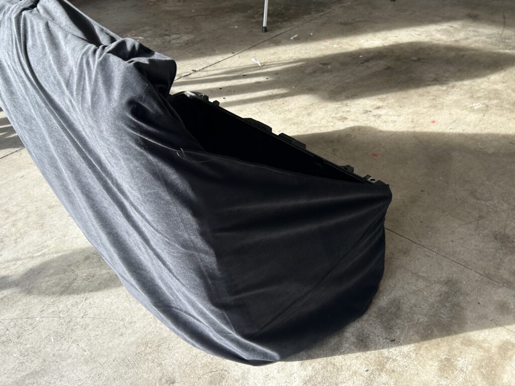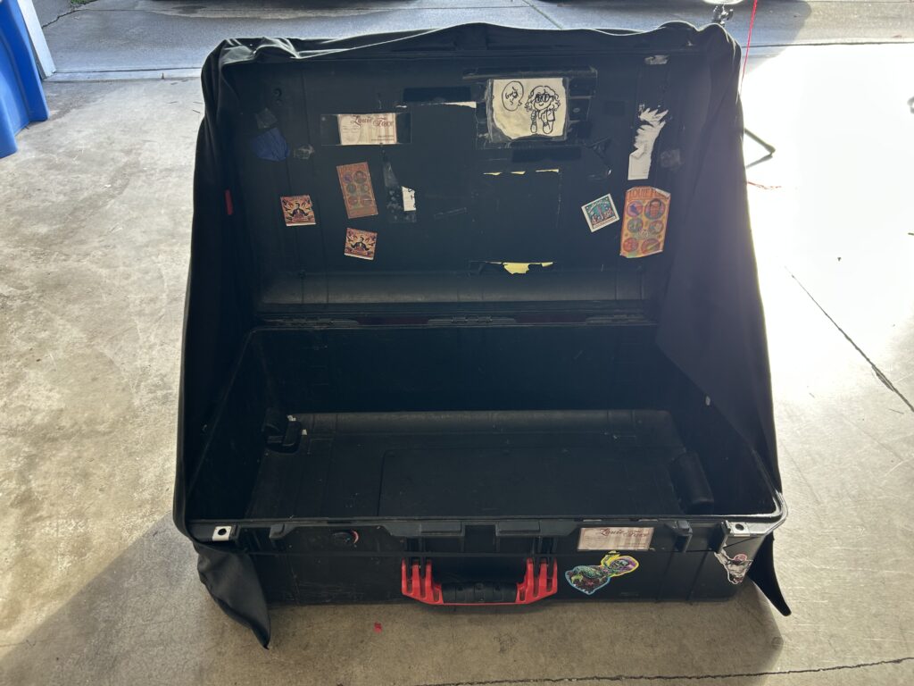 I needed a new prop case cover that would cover the front and sides of my case. I bought a few yards of fabric and got to sewing and this is what I made: